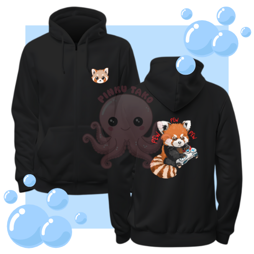 BLUZA Z KAPTUREM ZAPINANA NA ZAMEK - Panda Czerwona